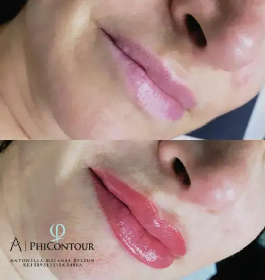 - Mejora la percepción estética de pacientes con labios asimétricos o despigmentados por causas genéticas, hormonales o cicatriciales.